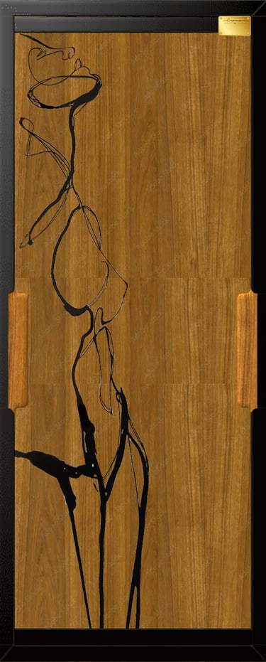 In essence, the door isn't just a physical barrier, it ´s a piece of art named "Flavour" because it invites the viewer to experience the rich, deep and intimate "flavour" of a woman´s personal glamour and self-derived pleasure, expressed through the elegant an evocative lines carved into the warm, natural medium of wood.