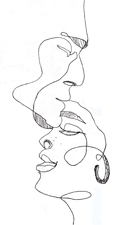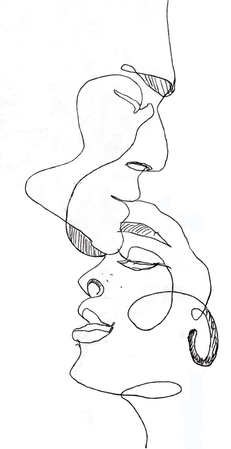 This artistic technique visually represents the idea of two separate entities becoming inextricably linked. It´s not just two profiles side by side, their features blend and share lines, implying a shared essence.