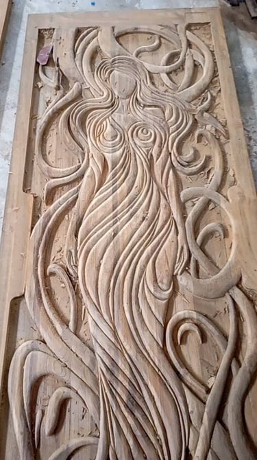Artistic Tradition: The depiction of a graceful, idealized female nude or semi-nude figure has a long tradition in western art, frequently referencing Venus. By naming this door " Venus", the artist is likely placing his work within this rich artistic lineage, inviting viewers to associate the carving with the timeless themes embodied by the goddess.